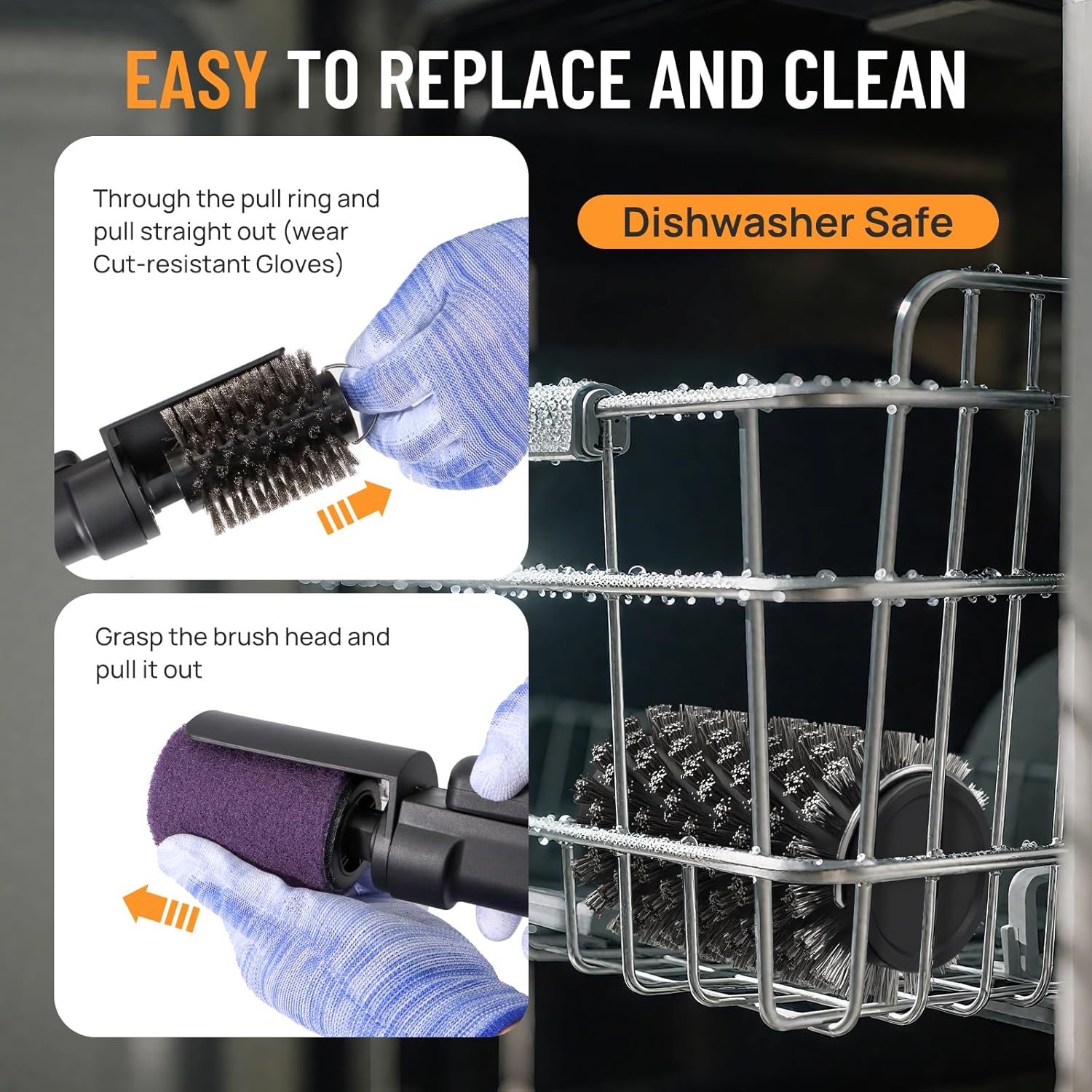 ✅ 180° Rotating Brush Head – Keeps your hands safely away from hot surfaces while reaching every nook and cranny.